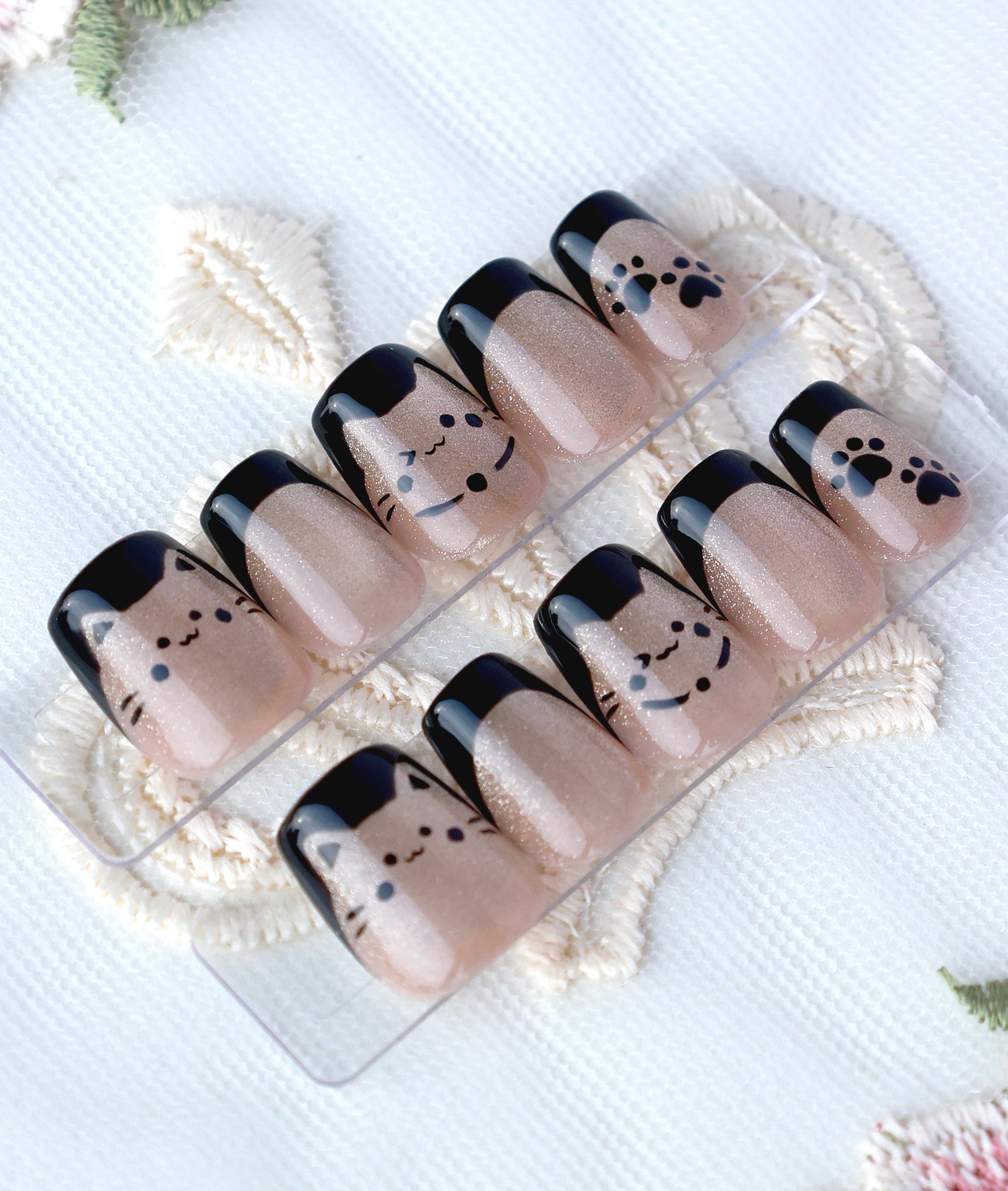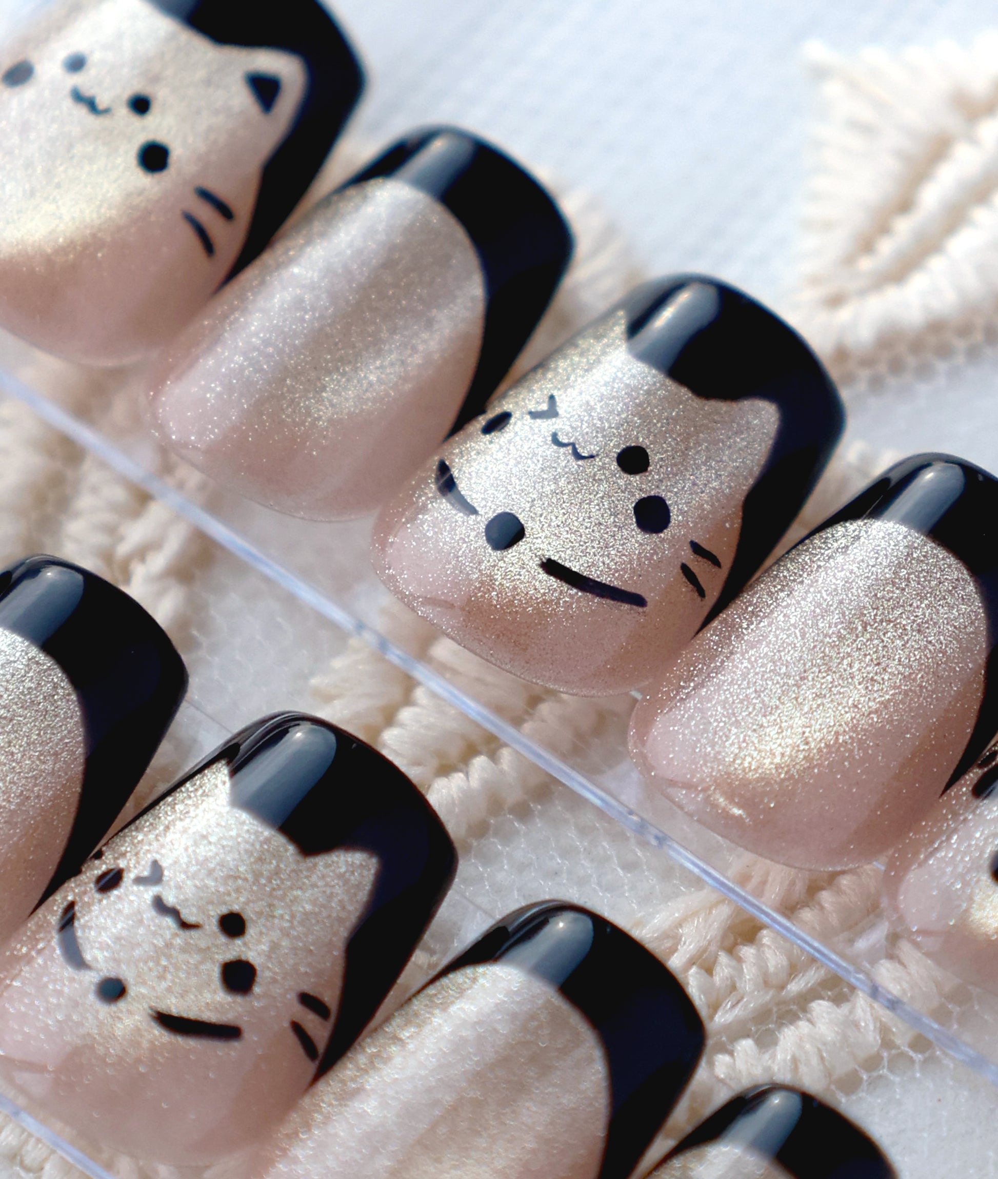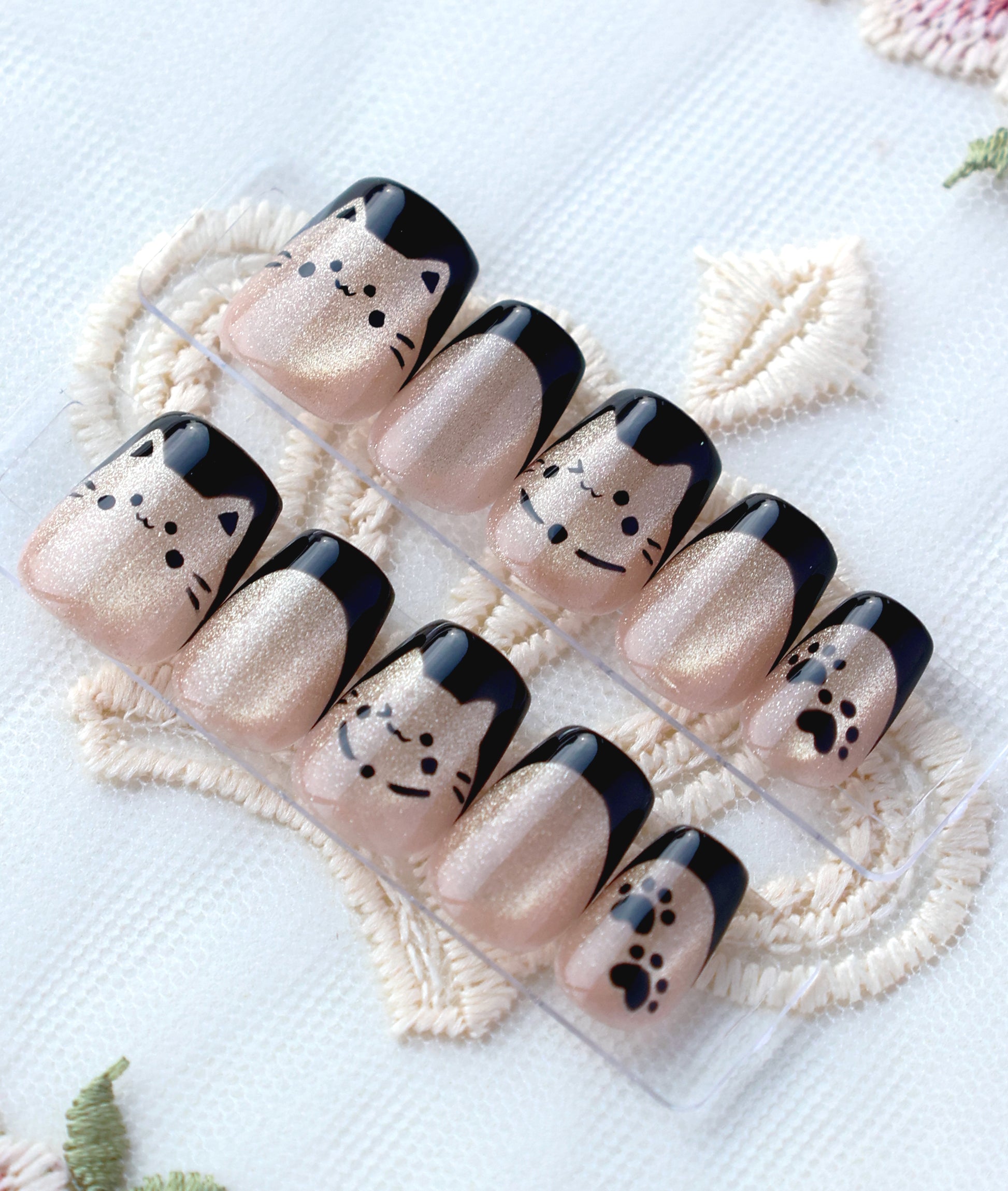 Oh how adorable the set is! Cute kitty faces, little paw prints, creamy Champagne cat-eye base that glows like soft moonlight, everything is so playful and glamorous!:)
