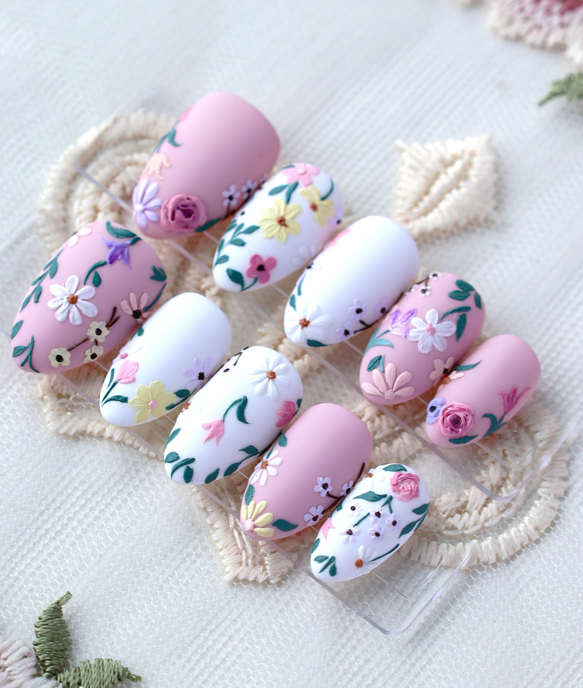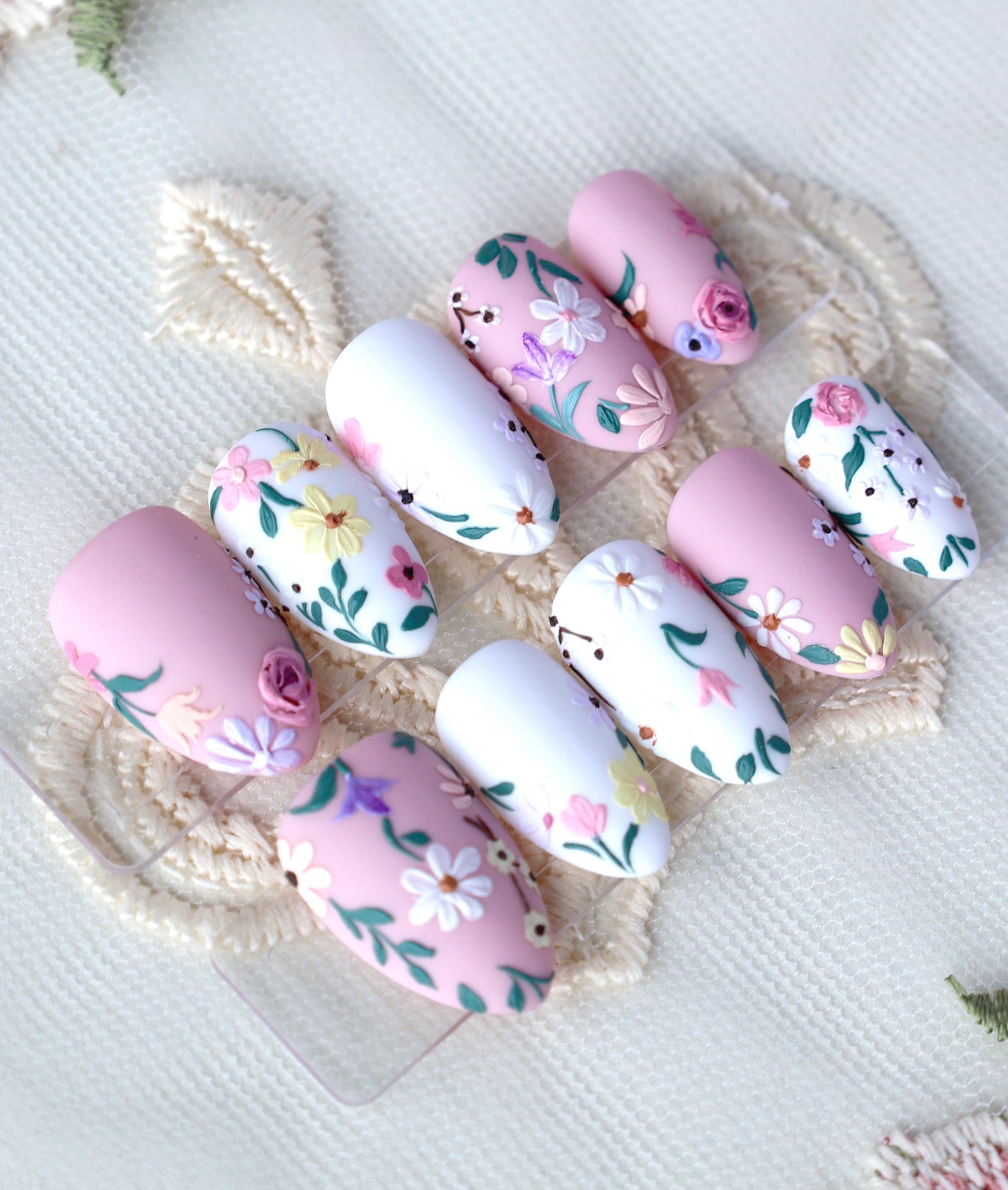 Featuring matte pastel wildflowers in an oil painting style, this set gives off a lot cottagecore elegance which will definitely elevate your spring outfit!:) Hope our cute creation brings a smile to your every day ~